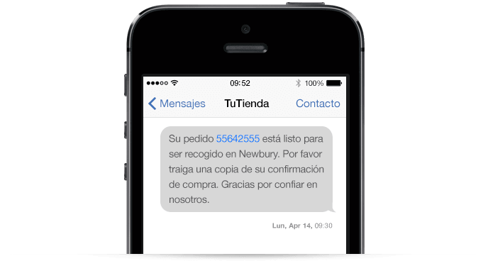 Los clientes que hacen pedidos a través de la web de la marca reciben de inmediato un correo electrónico confirmando el pedido y lugar de recogida de la compra. A continuación reciben un SMS el día en que su orden llega, para confirmar que su pedido está listo. Combinando el SMS y el correo electrónico facilita el proceso de recolección.
