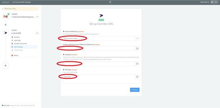 Ahora conecta tu cuenta de Esendex a Zapier.
